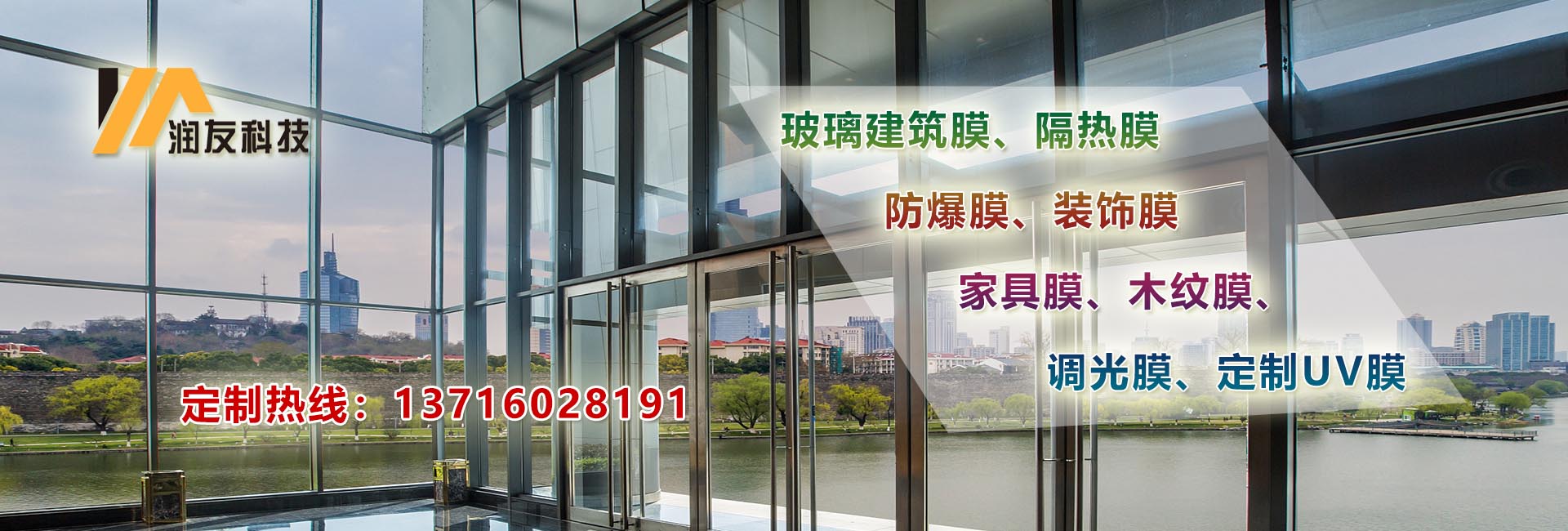 北京市潤友科技發展有限責任公司,是一家專注于建筑玻璃膜銷售、施工為一體、是目前專業建筑玻璃貼膜領袖企業。   公司致力于玻璃建筑膜、隔熱膜、防爆膜、裝飾膜、調光膜、木紋膜、家具膜、定制UV膜等等的應用推廣,并在節能、環保、技術創新等領域獲得多項顯著成績,多款式、多風格不同角度滿足客戶多元化需求。 ????經過多年的探索研究公司制定內部施工標準,從設計效果、施工規范、工地管理、質保維護等方面嚴控源頭規避施工隱患,為客戶打造安全節能環保的體驗環境。對行業的發展和施工工程的標準化提升都具有重要意義,同時也奠定公司在建筑膜行業的地位。 ????公司自成立于2005年,公司自經營建筑玻璃膜以來,承接了石景山奧運場館,釣魚臺國賓館,國務院機關事物管理局等大型建筑玻璃貼膜施工任務。積累了豐富的施工經驗,掌握了各種新型施工技術。多年來恪守“質量第一、客戶至上”的服務宗旨、遵循“優質、高效、團結、奉獻的工作態度、節能減排、為您創建舒適的家居及辦公環境。